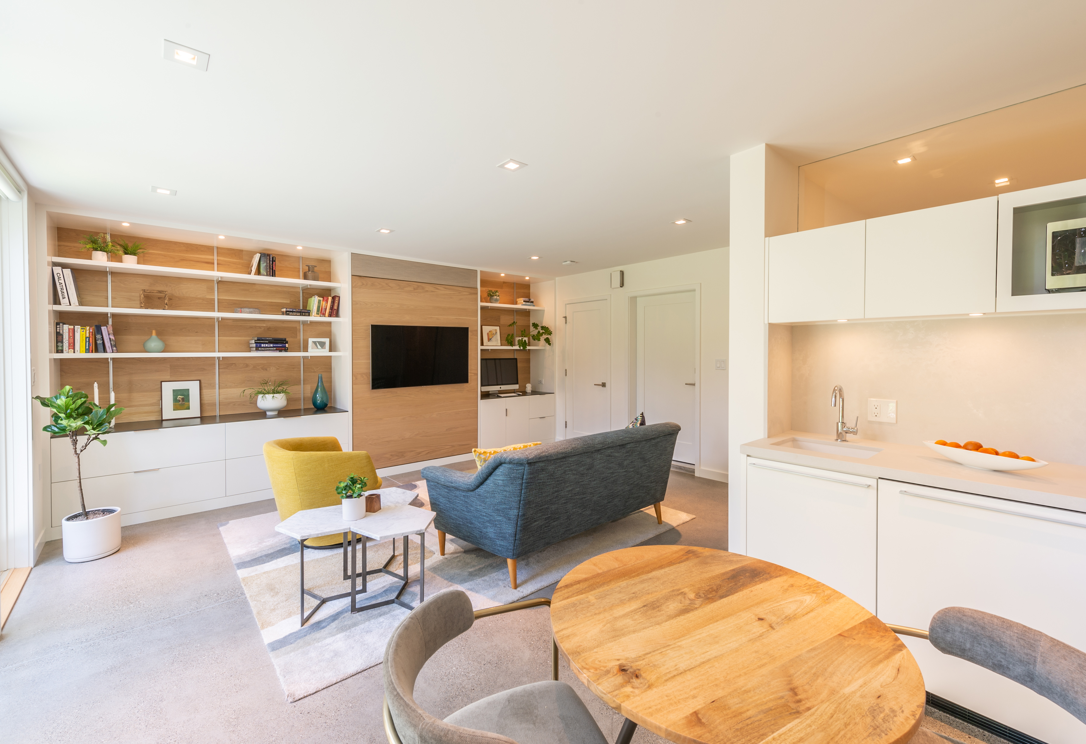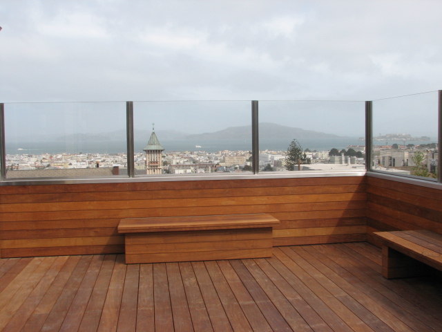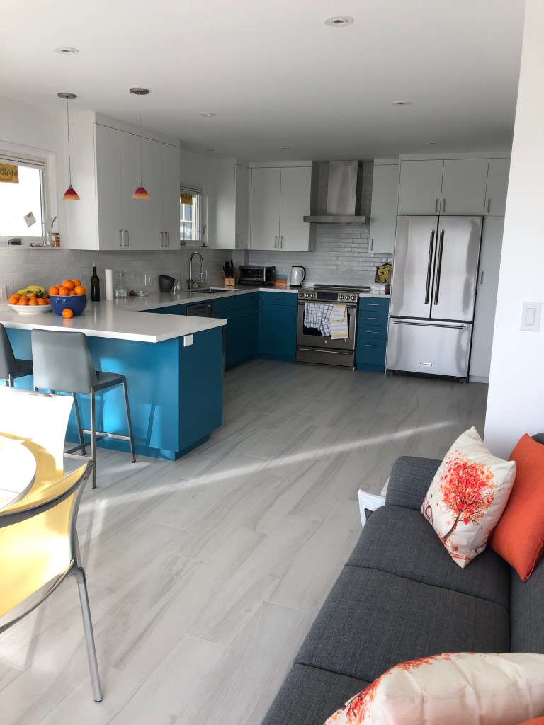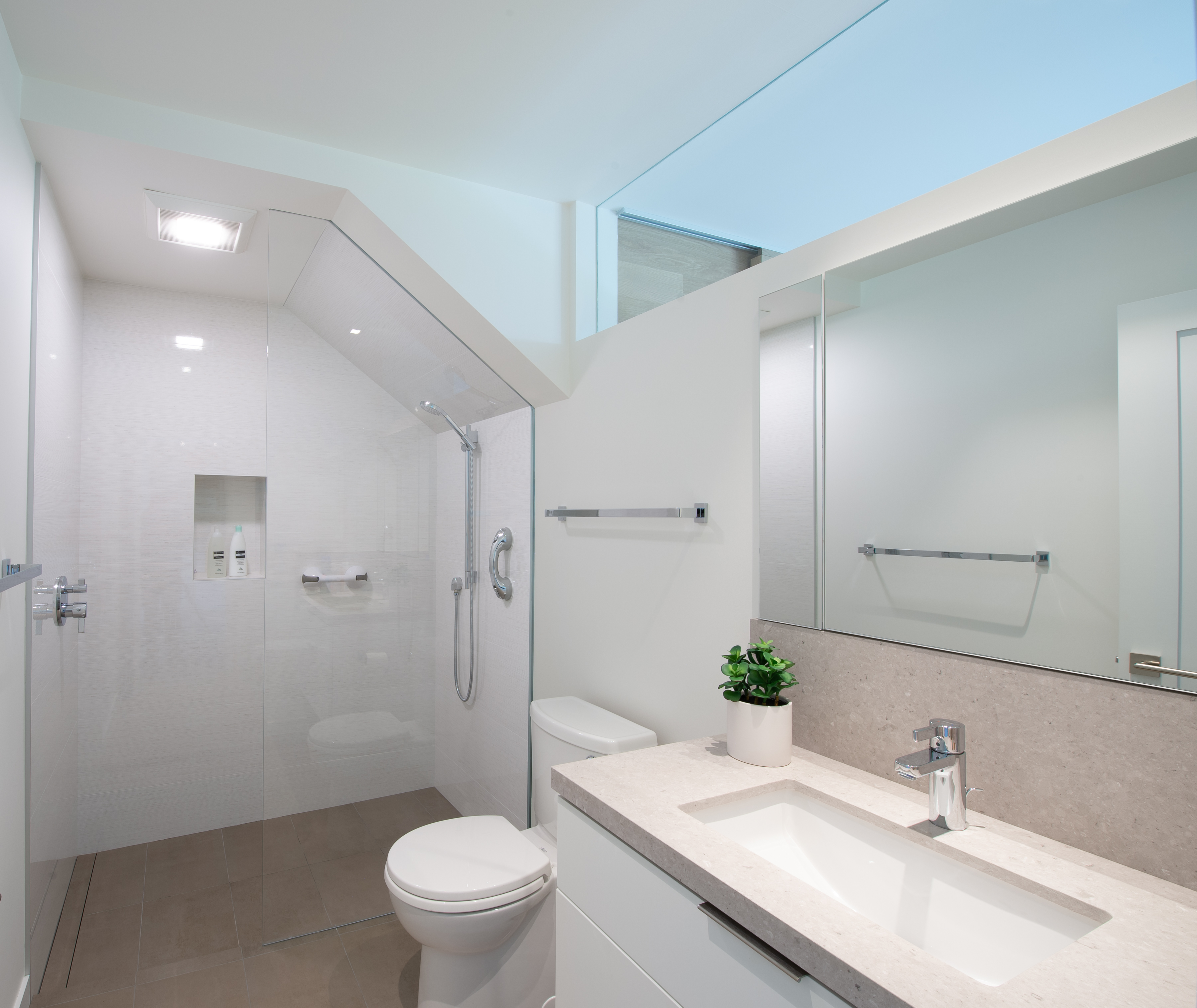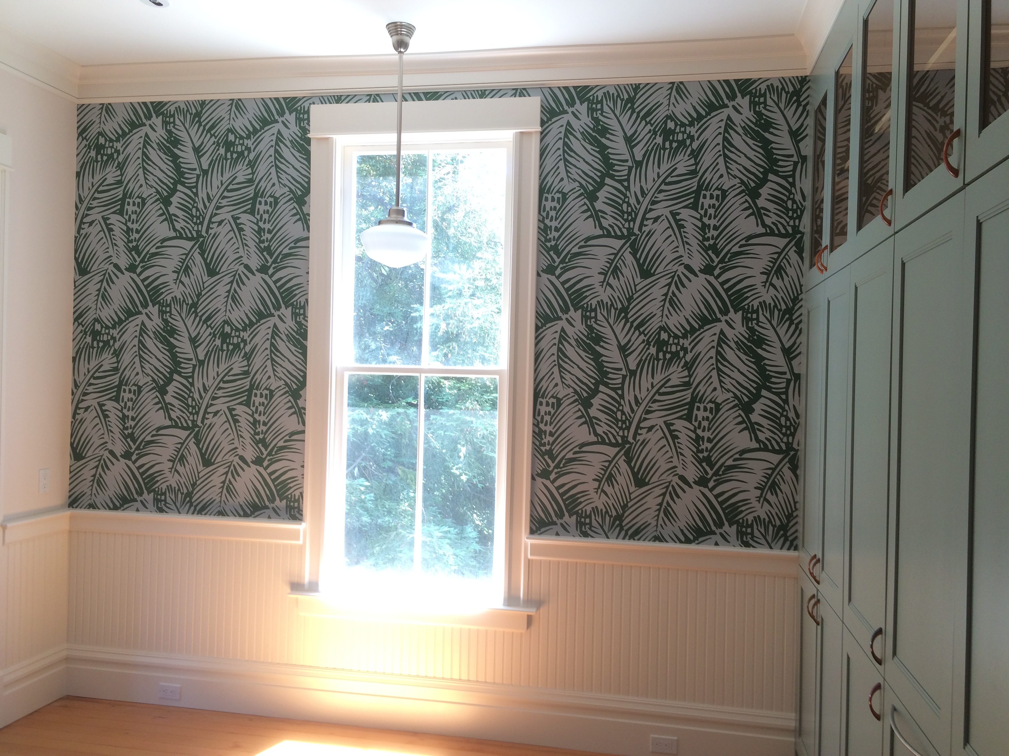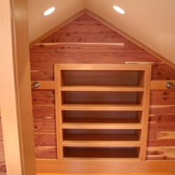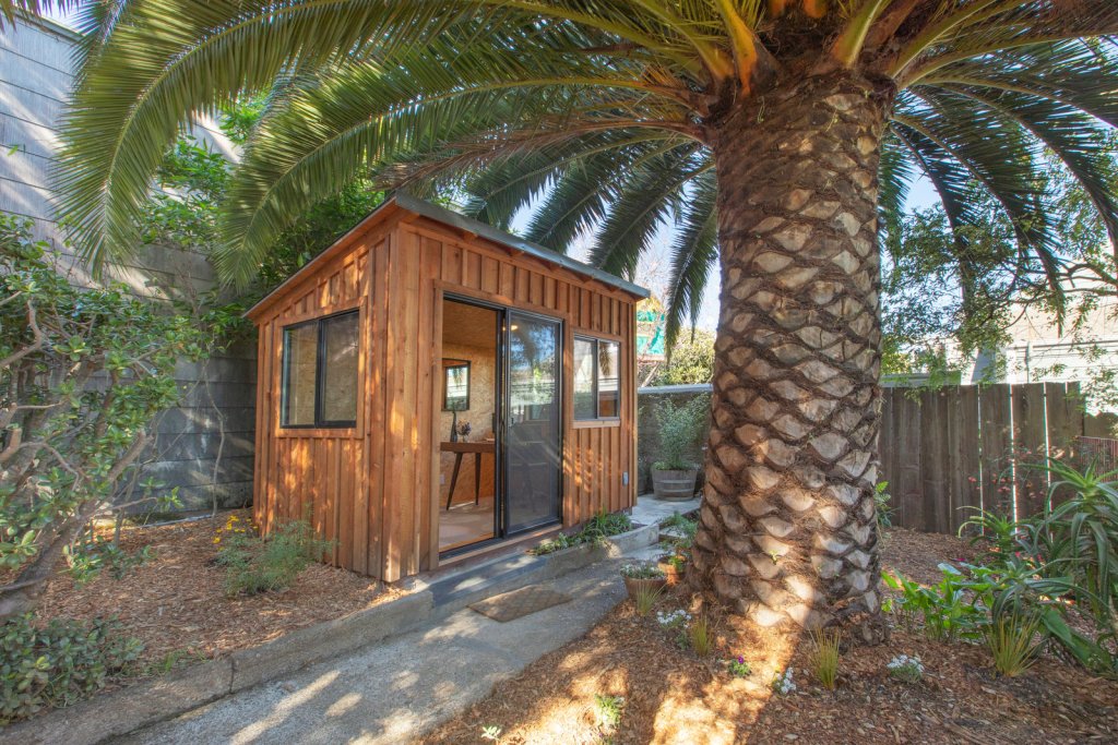 Ground floor suite with sliding partitionGround floor suite with Murphy bed downGround floor suite with Murphy bed upKitchen and SunroomKitchen with Caesarstone countertop and plank tile floorBathroom with transom window natural lightKitchen with pantry cabinets, wainscot, floral wallpaperRoof deck with Ipé decking and glass/stainless steel windscreenIpé deck with concealed fastenersIpé deck with existing handrail updated with redwood lattice infillWork from home Office/StudioBedroom with radiant heat, bead board ceilingCedar closet with shoe shelf